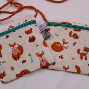 Kinder-BRUSTBEUTEL „Familie Fuchs“ mit Reißverschluss und Reflektorfähnchen; Brusttasche, Geldbörse, Geldbeutel