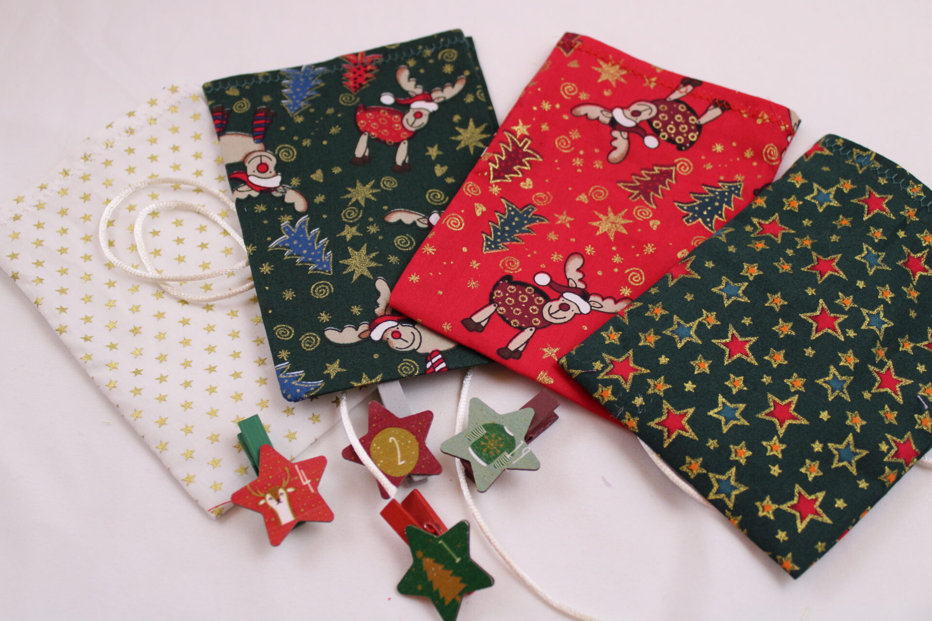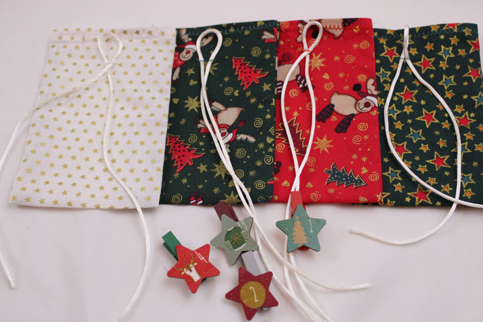 – 24 Säckchen aus 5 verschiedenen Baumwoll-Stoffen