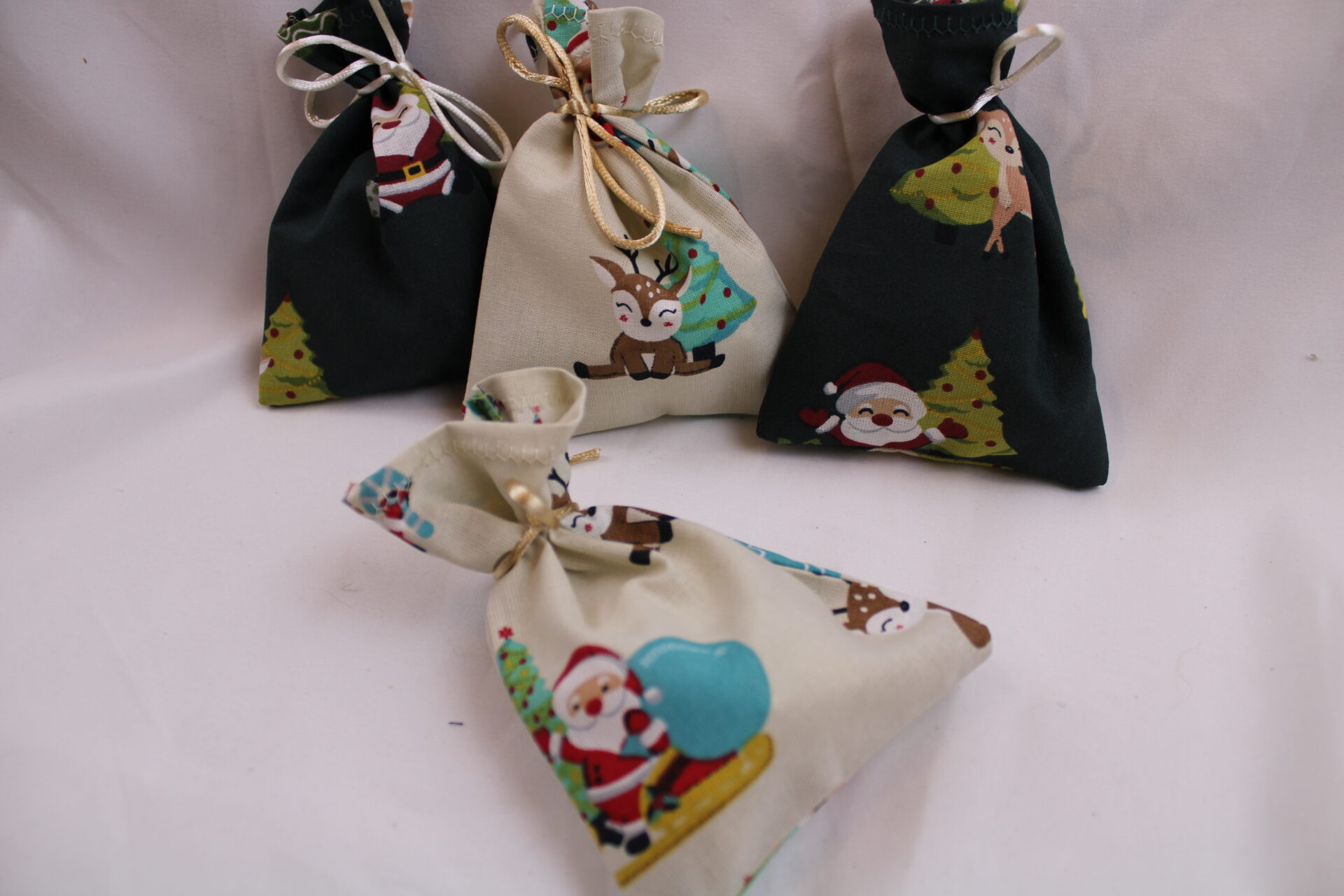 – angenähte Satinschnürchen zum Verschließen und Aufhängen der Säckchen