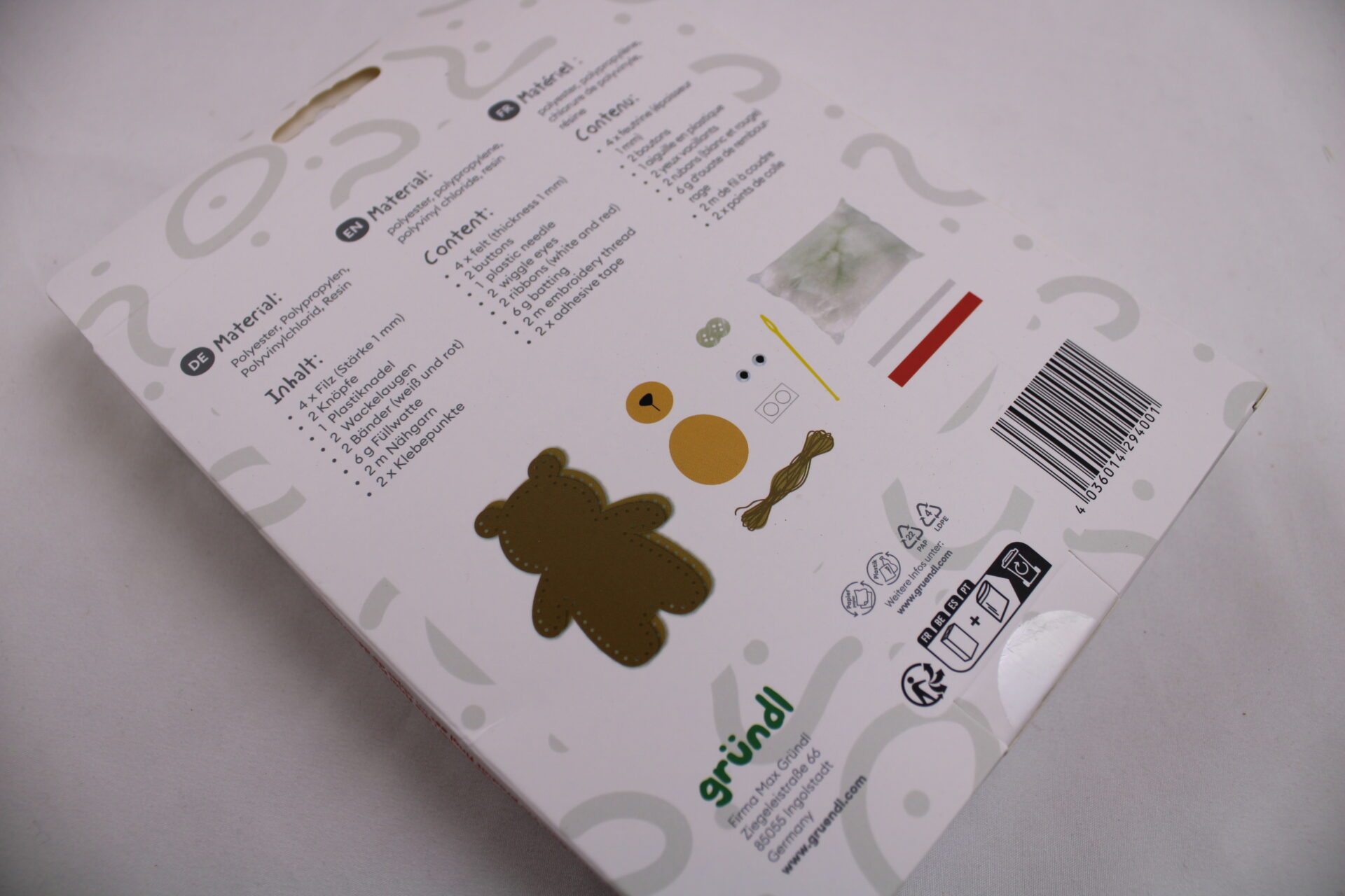 Bastelset / Nähset für Kinder „Teddy“ – Wolle Gründl Bastelpack mit komplettem Zubehör, Mitbringsel, für Kindergeburtstag, Adventskalender