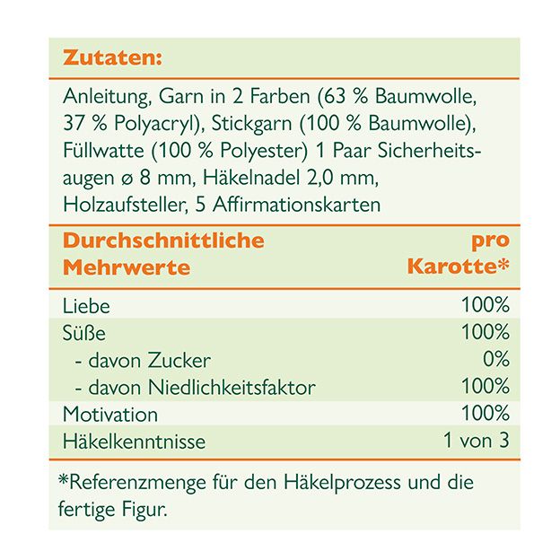 In diesem Set häkelst du die „Coole Karotte“ aus unserer Reihe der Emotional Support Veggies – perfekt als süßes Geschenk, Glücksbringer oder einfach für dich selbst!