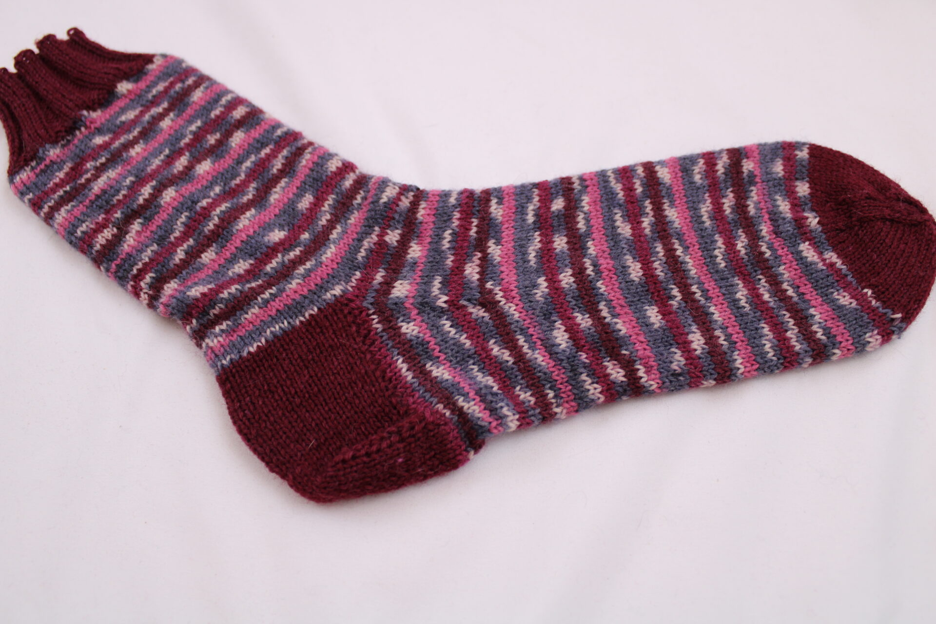 Gr. 40/41 – Wollsocken handgestrickt, Rottöne/grau