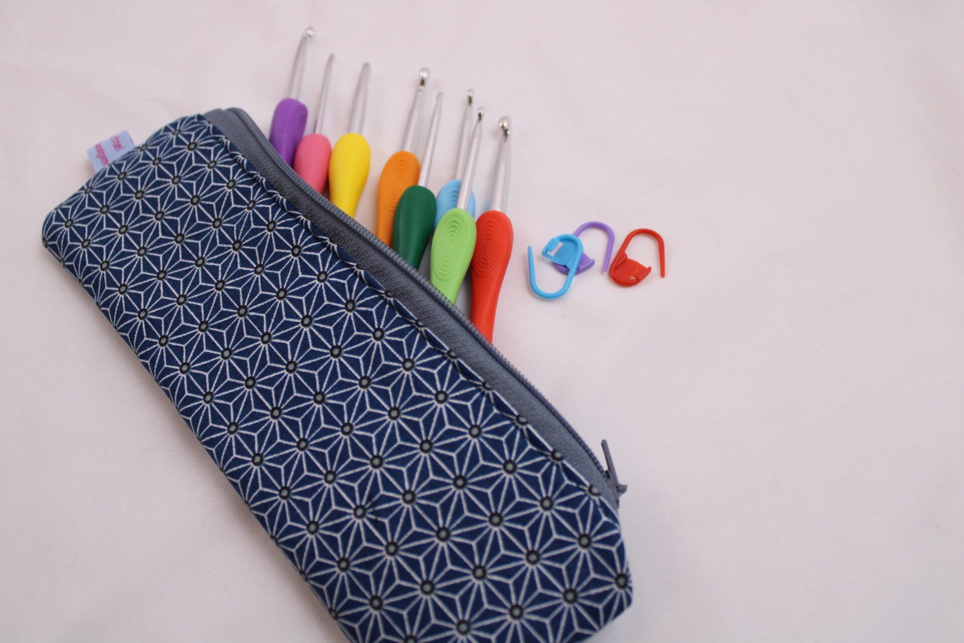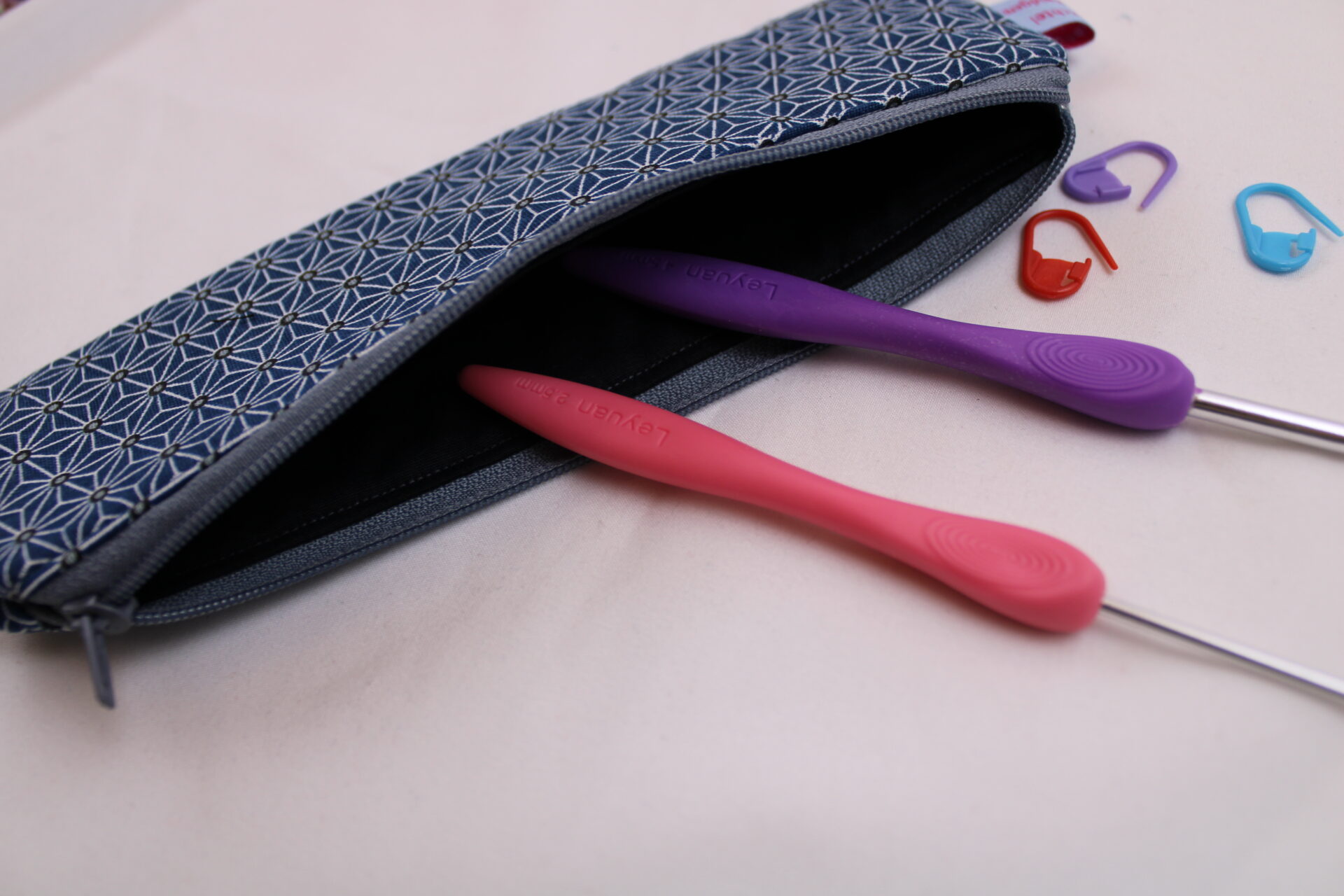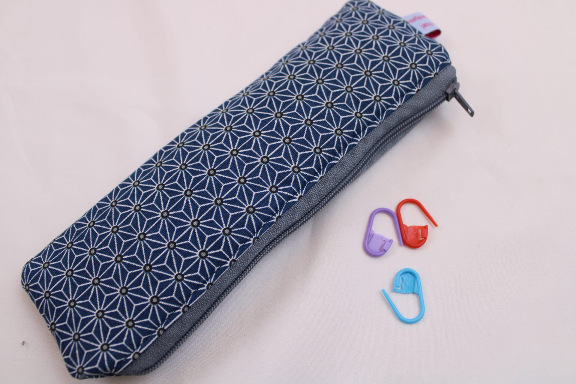 Das schlanke Täschchen mit Reißverschluss bietet Platz für die Nadeln und Maschenmarkierer – so hast Du Dein Zubehör immer ordentlich verstaut.