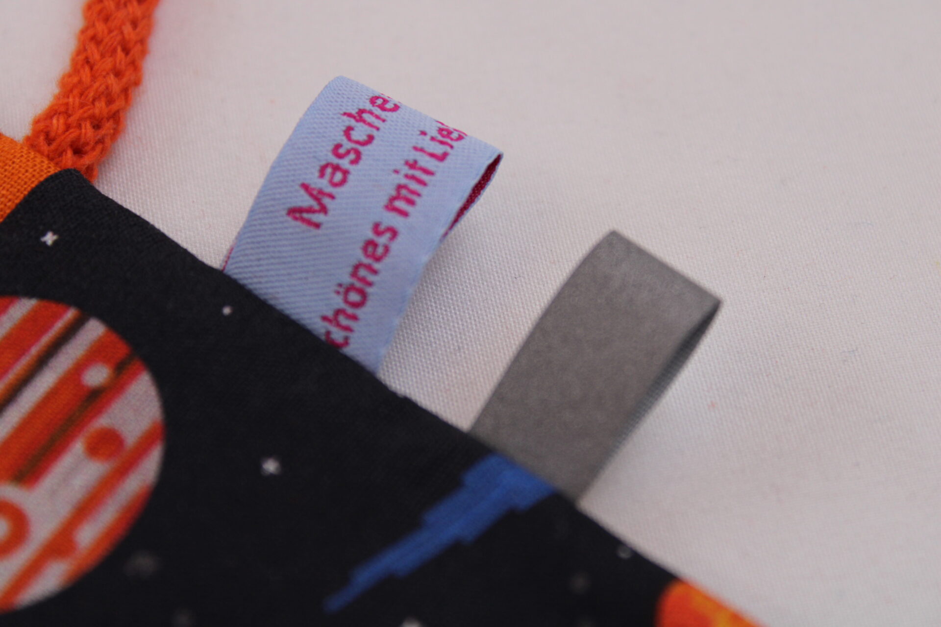 Viele verschiedene Modelle und Dessins, mit Baumwollkordel, mit Sicherheitsverschluss oder mit Fahrkartenfach unter meiner Shop-Rubrik „Für Kinder“ :