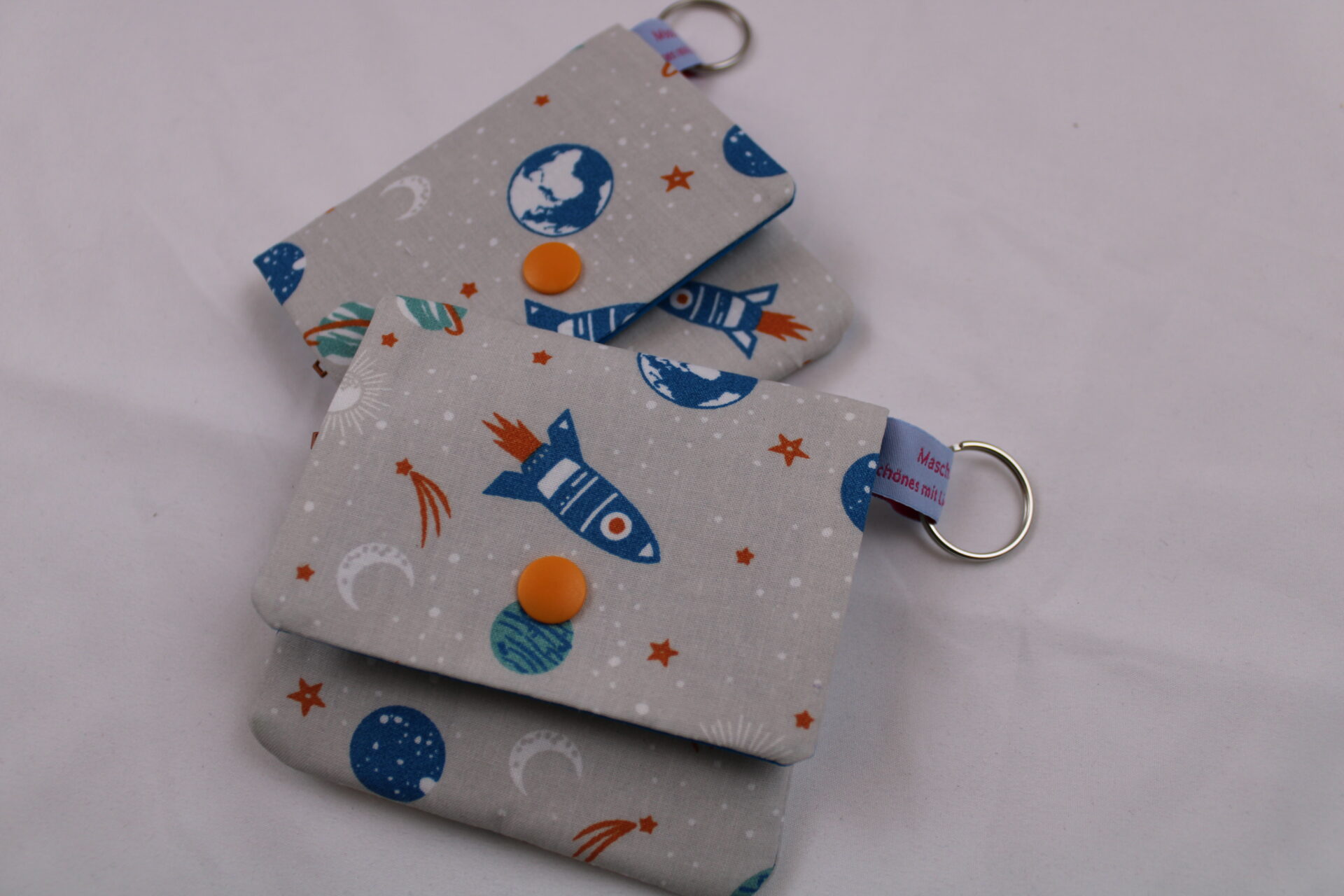 Kinder-Geldbeutel „Weltall/grau“ mit Reißverschlussfach, Steckfach und Schlüsselring, optional mit Klarsichtfach, Geldbörse, Minibörse, Portemonnaie