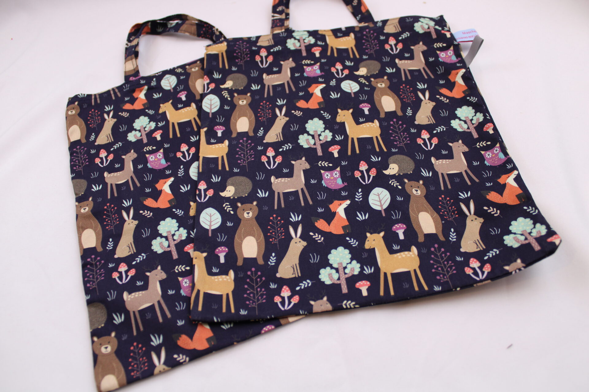 Kindertasche, Einkaufstasche „Im Wald-schwarz“ – KiTa-Tasche, Malbuchtasche, Geschenktasche, Tragetasche, Freundebuchtasche, Stoffbeutel