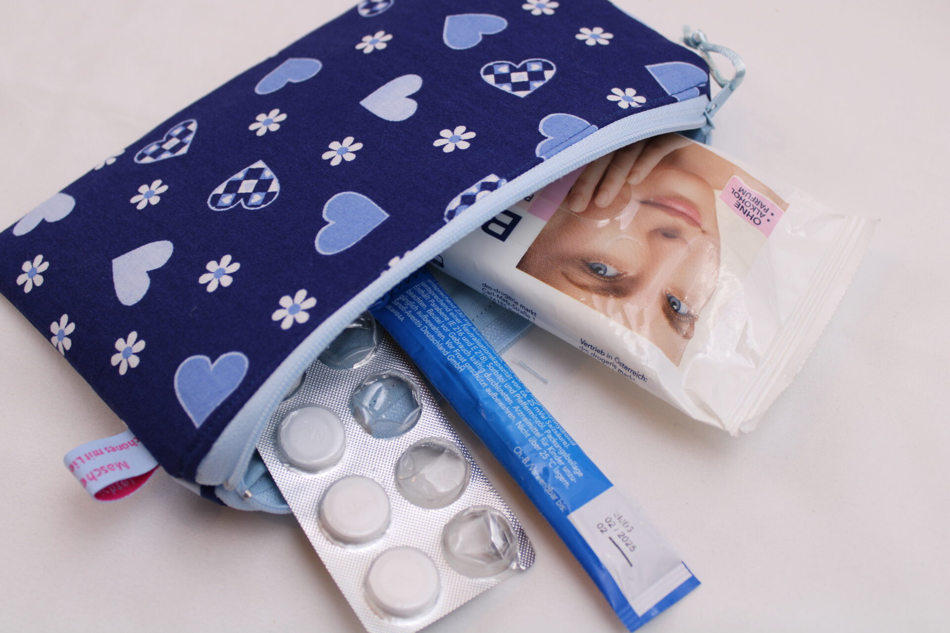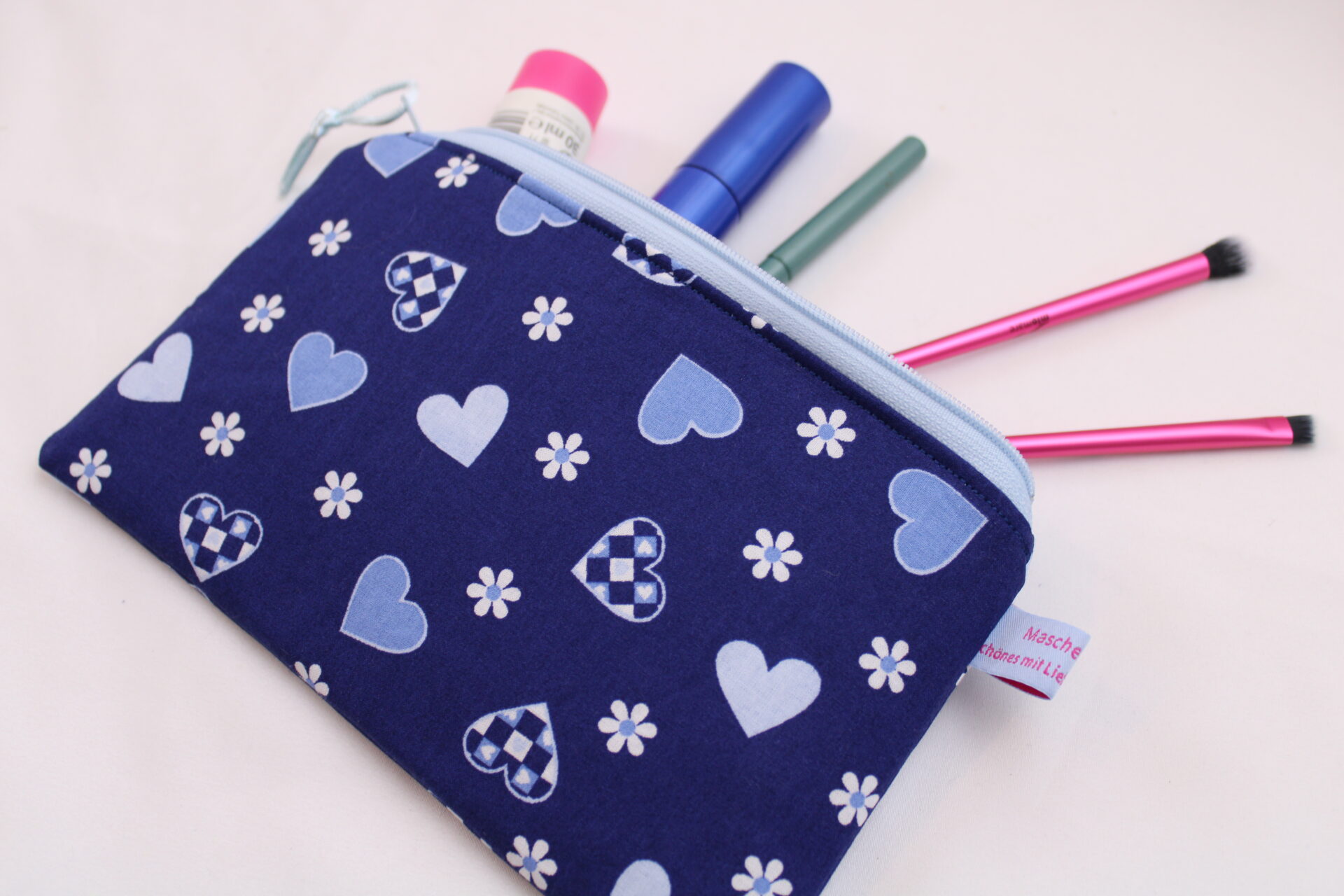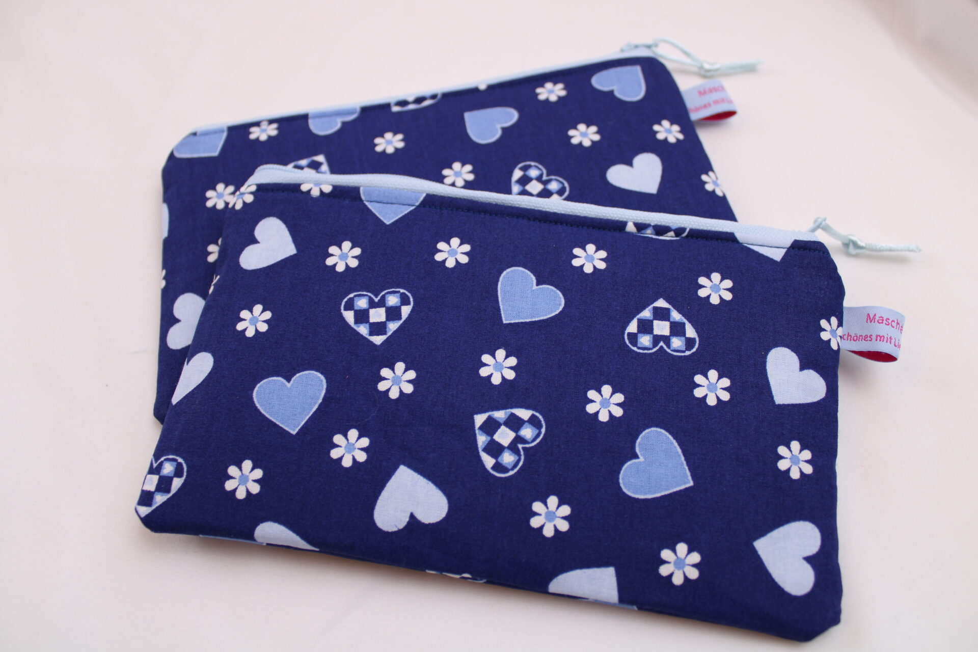 Kosmetiktäschchen / Schminktäschchen / Medikamententäschchen / Notfalltäschchen / Pflastertäschchen / Federmäppchen „herzig blau“