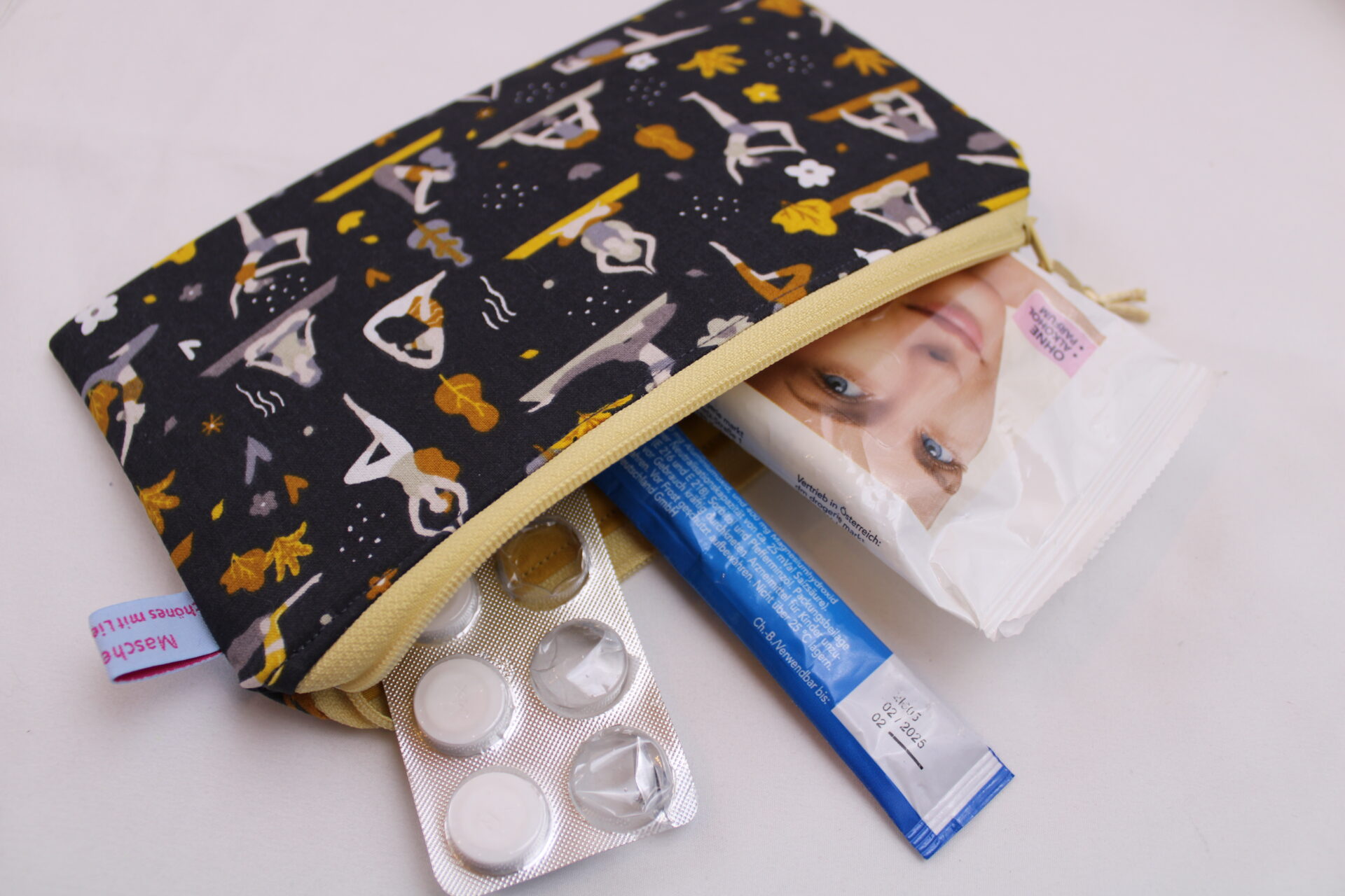 Kosmetiktäschchen / Schminktäschchen / Medikamententäschchen / Notfalltäschchen / Pflastertäschchen / Federmäppchen „Yoga“