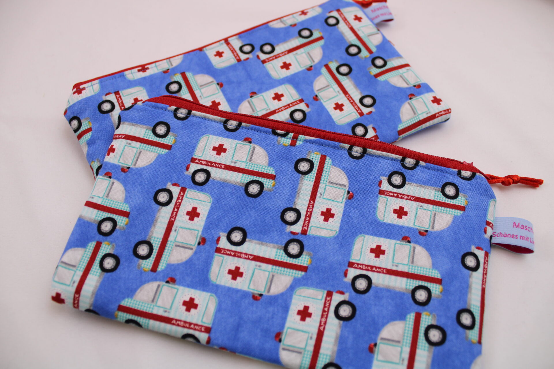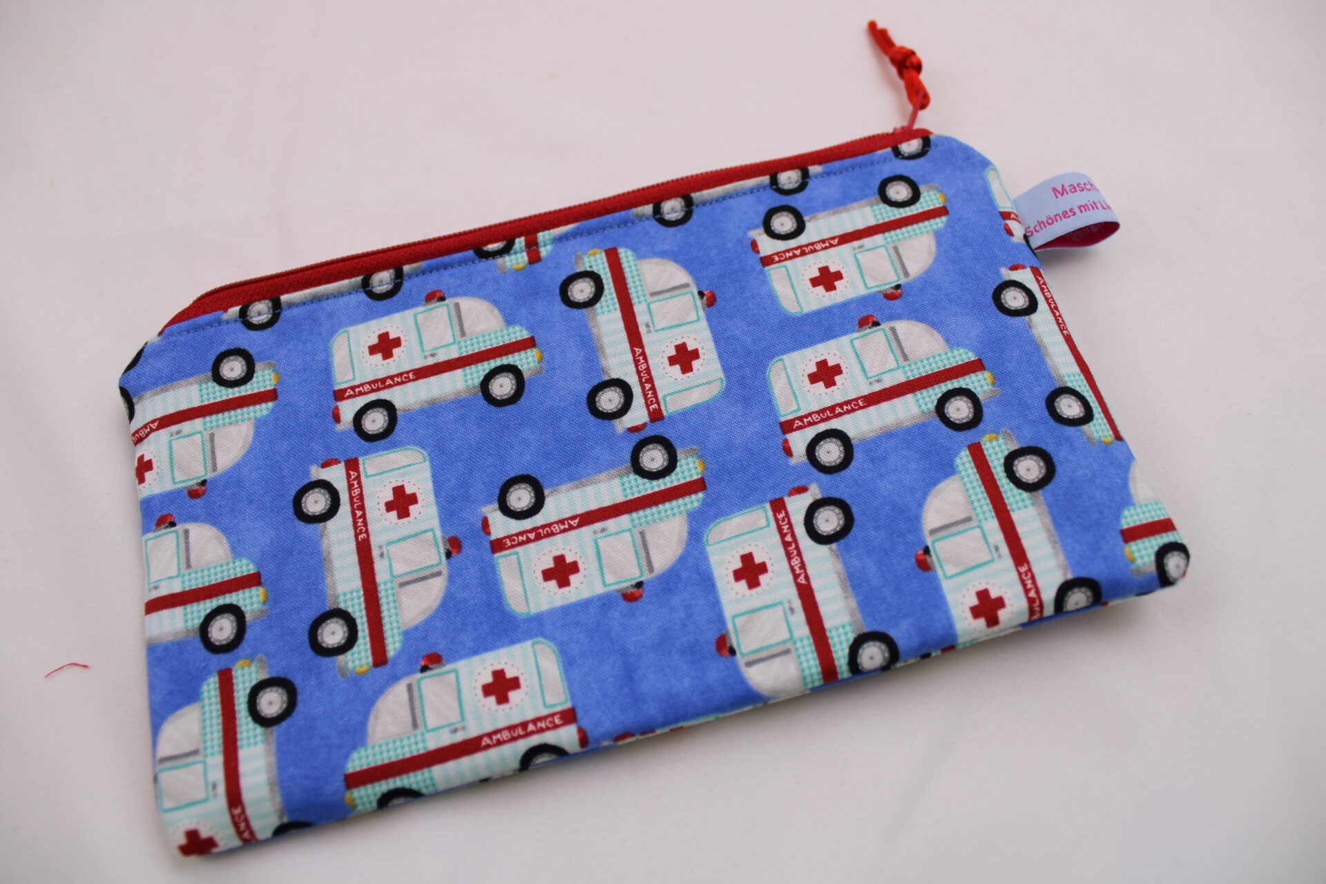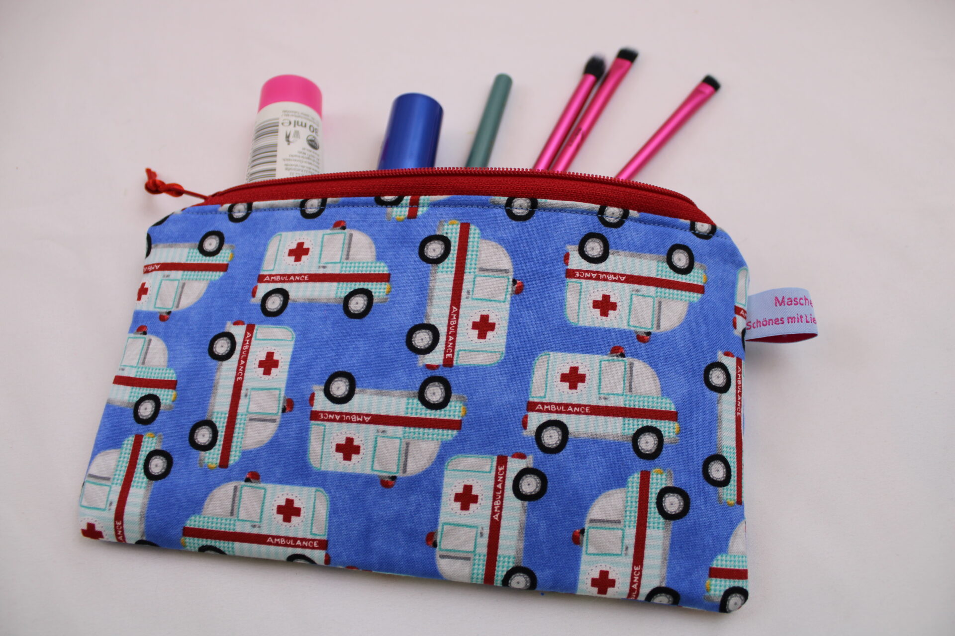 Kosmetiktäschchen / Schminktäschchen / Medikamententäschchen / Notfalltäschchen / Pflastertäschchen / Federmäppchen „Krankenwagen“