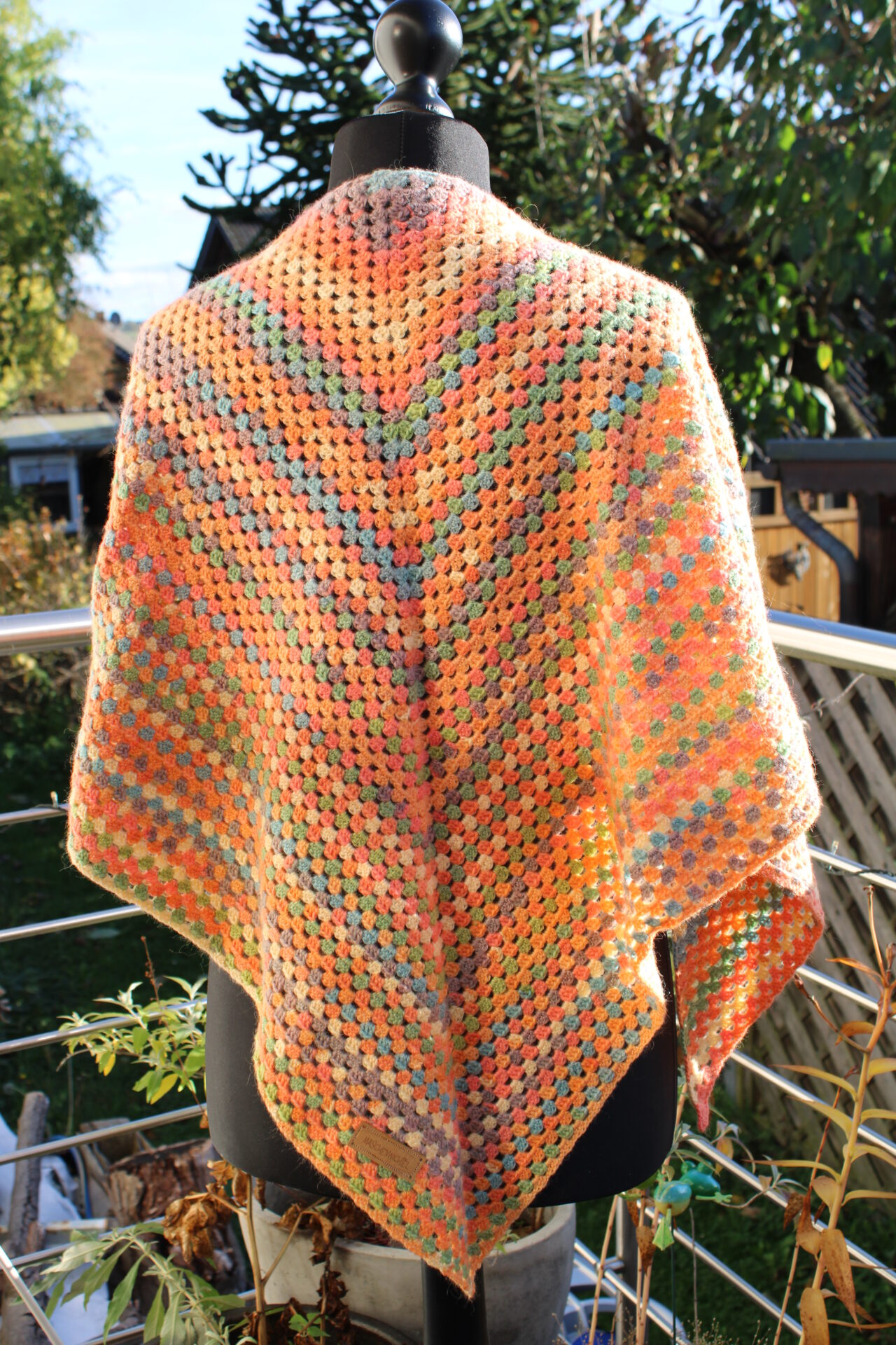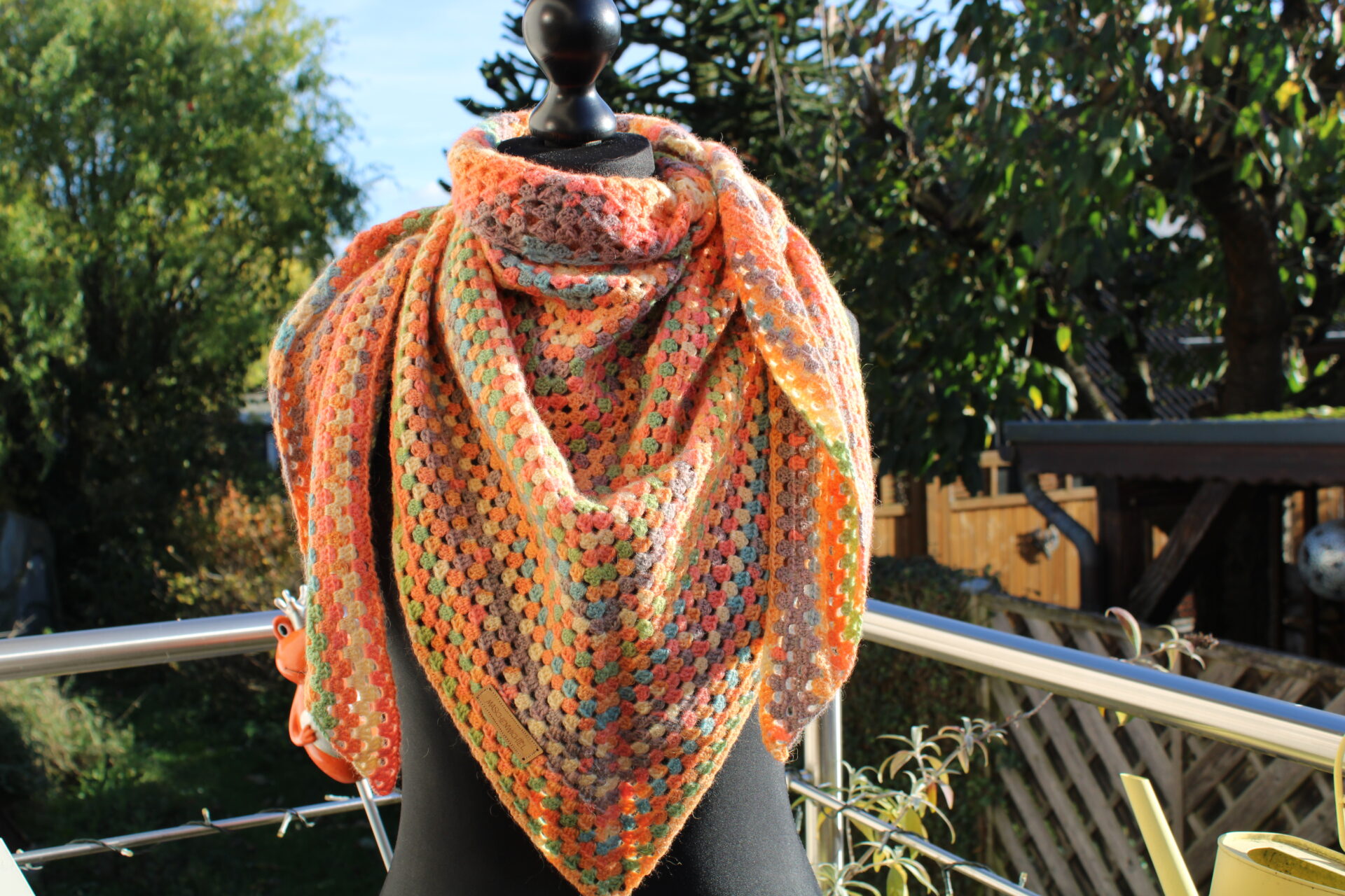 Dieses handgehäkelte Dreieckstuch bringt Farbe, Stil und gute Laune in dein Outfit – perfekt für alle, die Handarbeit und Individualität lieben.
