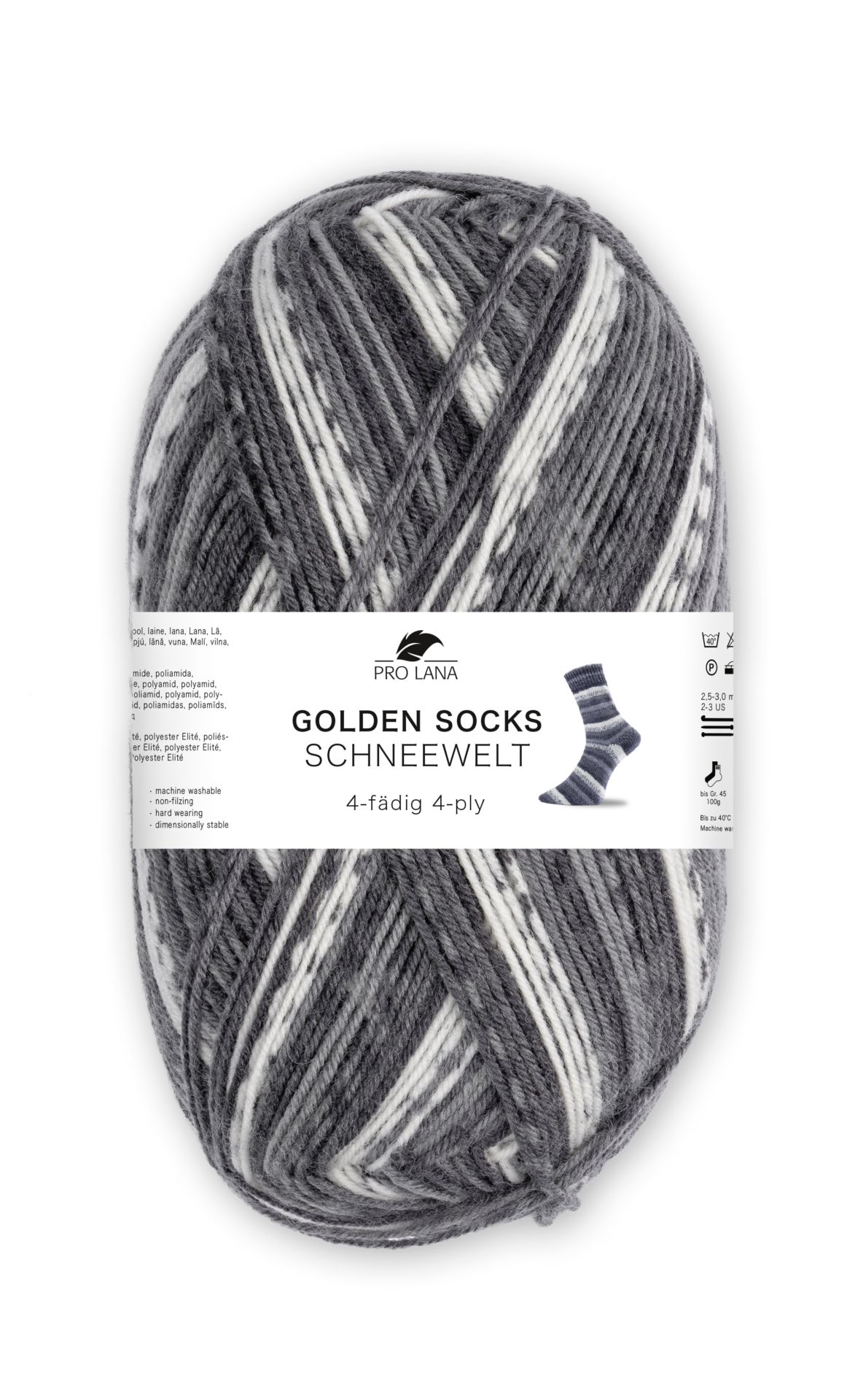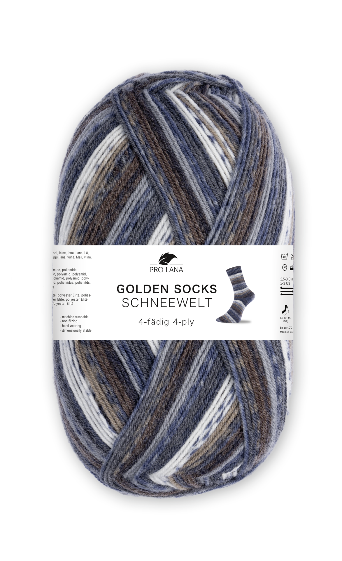 Pro Lana / Golden socks SCHNEEWELT – VORTEILSPACK – 5 verschiedene Farben. Sockenwolle 5x100g, 4-fädig, für Nadelstärke 2.5 – 3.0 mm
