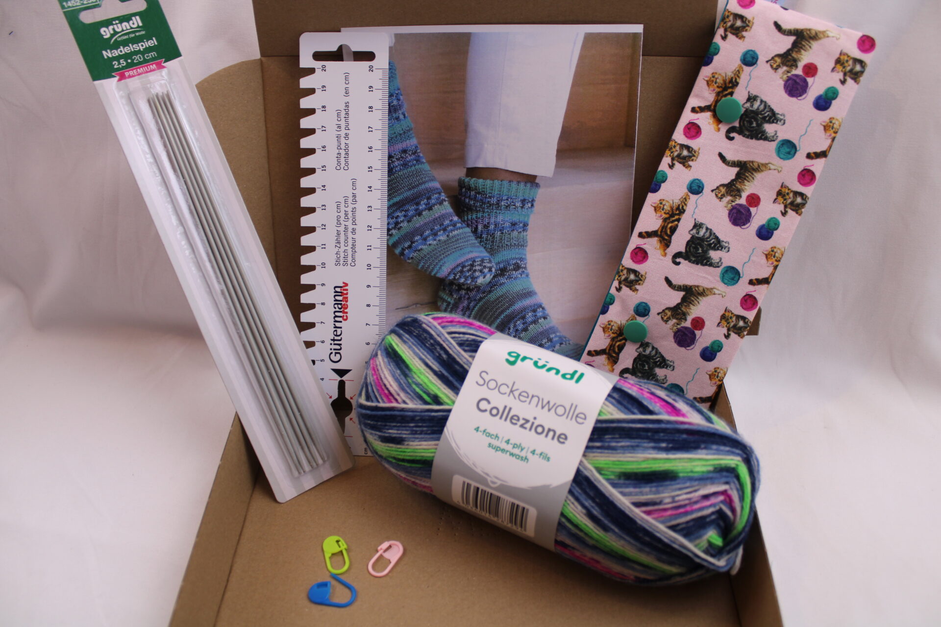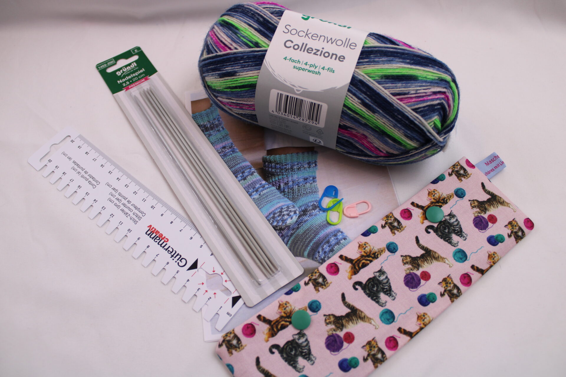 Bei diesem Set zum Socken stricken ist schon alles dabei, was Du brauchst, um loszulegen: