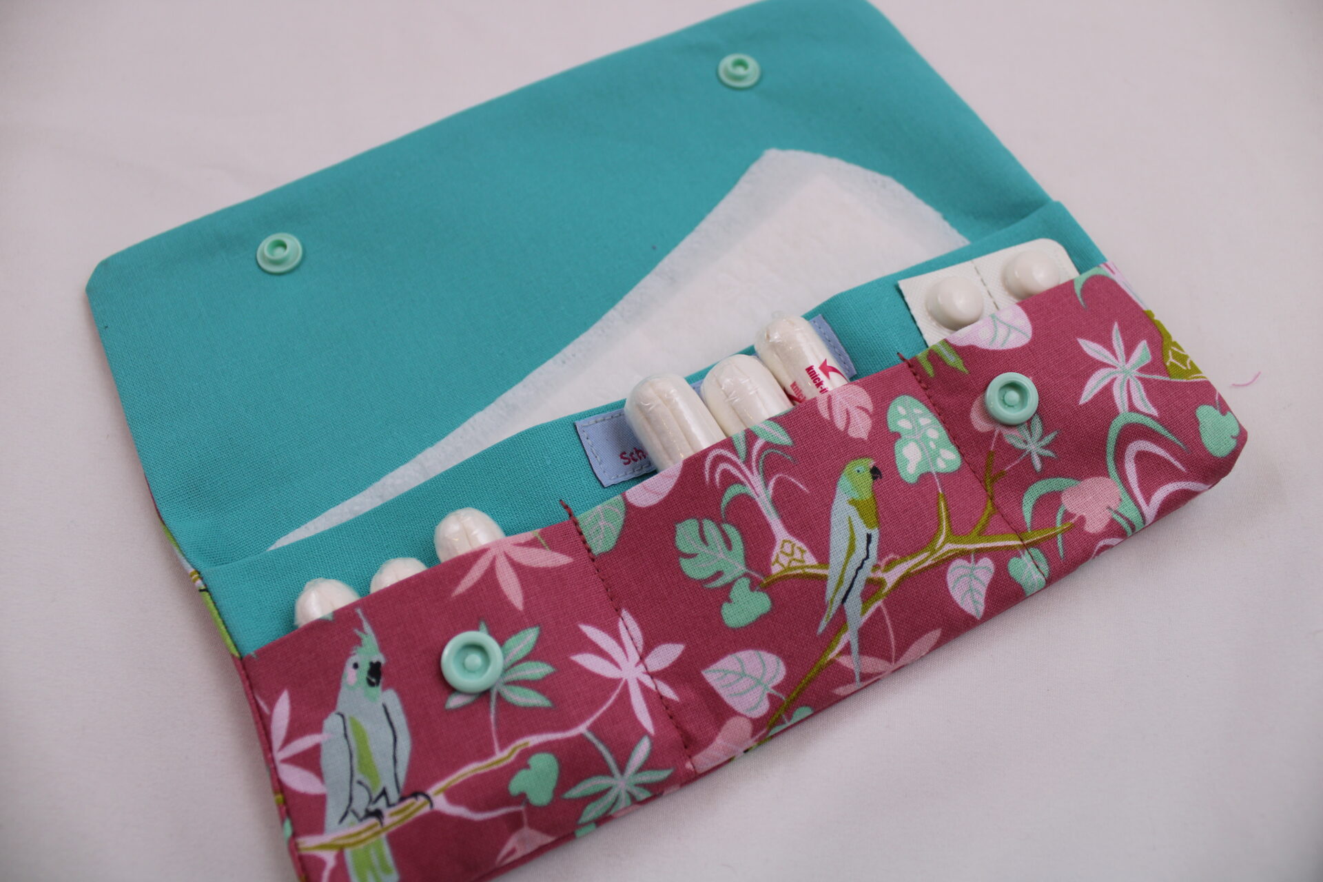 Alternativ zum Tampontäschchen kann es natürlich auch super für Pflaster, die Kopfschmerztablette, Erfrischungstücher, Ohropax und vieles mehr genutzt werden.