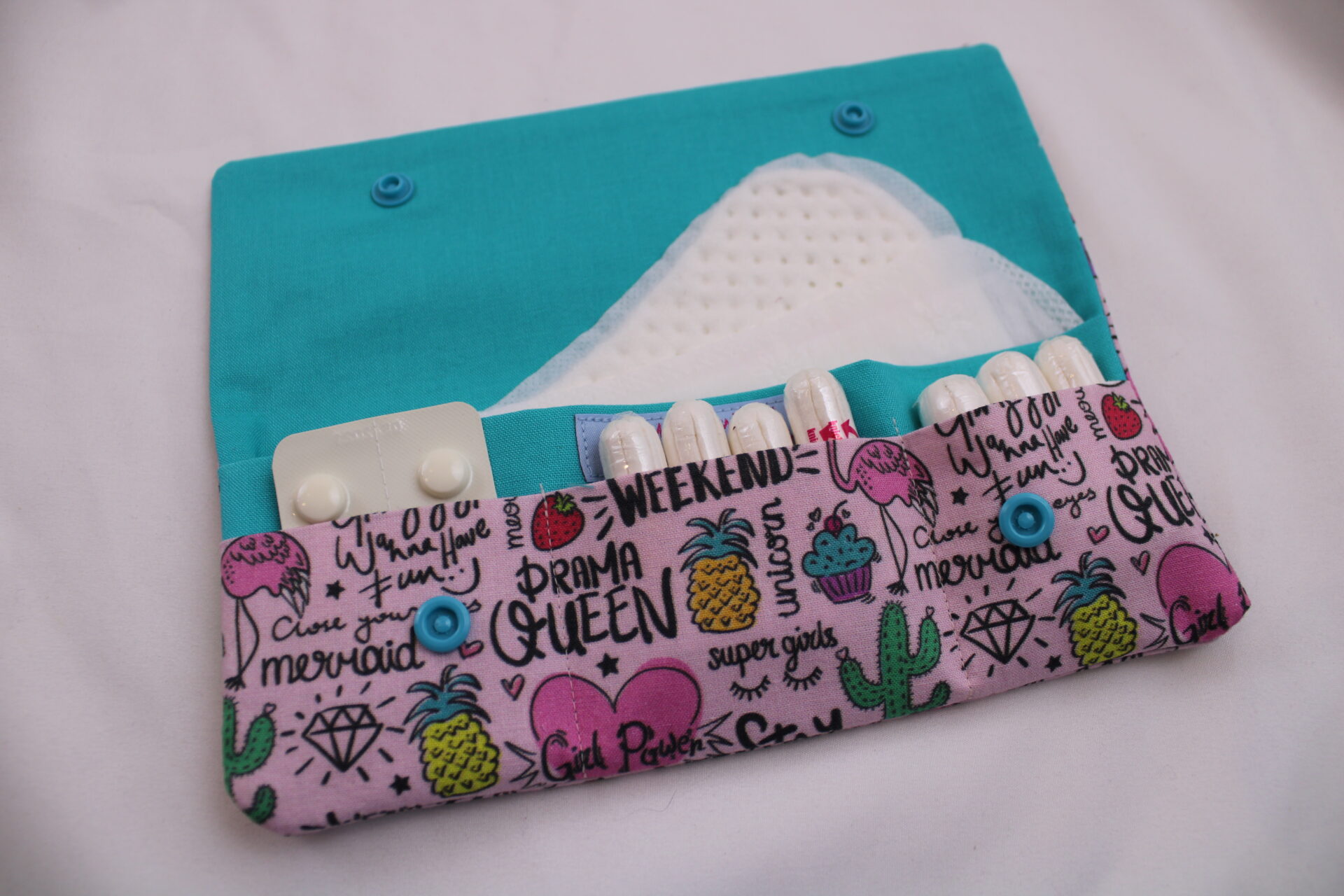 Alternativ zum Tampontäschchen kann es natürlich auch super für Pflaster, die Kopfschmerztablette, Erfrischungstücher, Ohropax und vieles mehr genutzt werden.