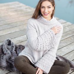 Das voluminöse Garn ist durch seinen 20-prozentigen Wollanteil sehr weich und angenehm auf der Haut zu tragen.