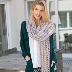 Das voluminöse Garn ist durch seinen 20-prozentigen Wollanteil sehr weich und angenehm auf der Haut zu tragen.